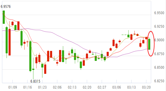 据中国央行最新数据显示,周三(3月22日)人民币兑美元中间价报6.8889,较上个交易日升值182个基点,创一周内最大降幅,此前人民币中间价连续三个交易日上调。 3月22日讯 据中国央行最新数据显示,周三(3月22日)…