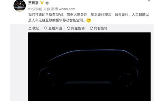 贾跃亭微博发新车V9动图 与九城合资打造,计划明年实现量产销售! 2019年04月04日 11:21来源:第一黄金网 责任编辑:小鱼儿 <BR /> 4月4日上午,贾跃亭发布微博,介绍法拉第未来(FF)即将推出的新旗舰车型V9,称…