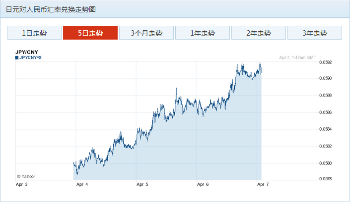对于日本来说,由于日元较为强劲且打压了日经指数,所以当前这种货币“和平”状态更像是另一场货币风暴来临前的平静。据银行间外汇市场最新数据显示,2016年04月7日日元兑人民币汇率中间价为:1日元兑人民币0.059…