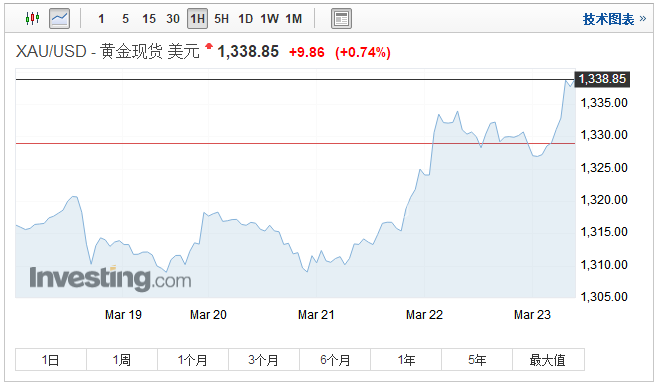 特朗普大手一挥“股债双杀” 黄金开盘暴拉大行情将至? 2018年03月23日 10:39来源:第一黄金网 责任编辑:Walker <BR /> 第一网3月23日讯 周五(3月23日)国际开盘于1329.03美元/盎司,亚市盘初因中美贸…