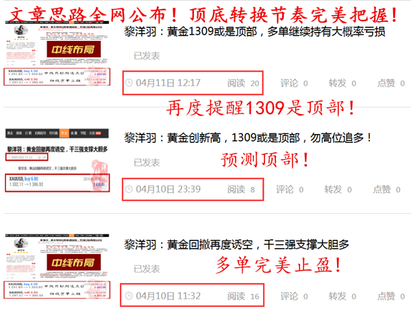 黎洋羽:黄金多空转换赚24点,今日能超跌反弹吗? 昨日黄金如期迎来大跌,成功预测1309为本轮顶部,顶底转换中完美预测成功,两天大赚24个点!如果不知道应该在涨跌当中等待还是放弃,在博弈当中前进还是后退,在…