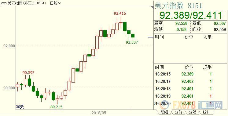 汇通网讯——4月10日欧洲时段,美元指数创两日高点97.2235,…