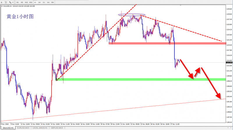 黄金市场消息面解读:现货黄金周二(11月27日)加大跌幅,美市盘中最低下探至1212.03美元/盎司,金价短线出现高台跳水,已跌破1220和1215美元/盎司的支撑位,进一步走弱。美元周二强势上涨,美元指数最高触及97.38…