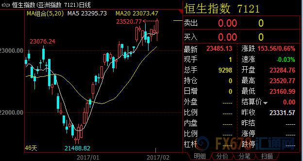 【港股收盘】恒指收高0.7%,刷新三个半月高位至235