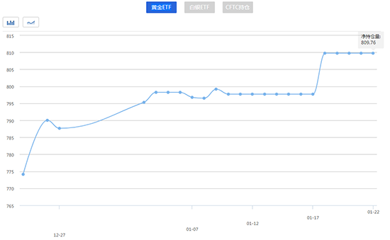 1月22日监测数据显示:1月22日,美国商品期货交易委员会黄金ETF持仓量为809.76吨,与上一交易日持平。第一黄金网1月22日讯 1月22日监测数据显示:1月22日,美国商品期货交易委员会黄金ETF持仓量为809.76吨,与上…