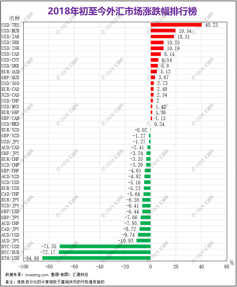 汇通网讯——2018年金融市场极为震荡,本文总结了118个交易品种在2018年的表现。加密货币可谓熊冠全球,新兴市场货币跌幅也居前,2018年全球股市市值蒸发约12万亿美元,商品期货一片绿,但天然气期货以25.03%的涨…
