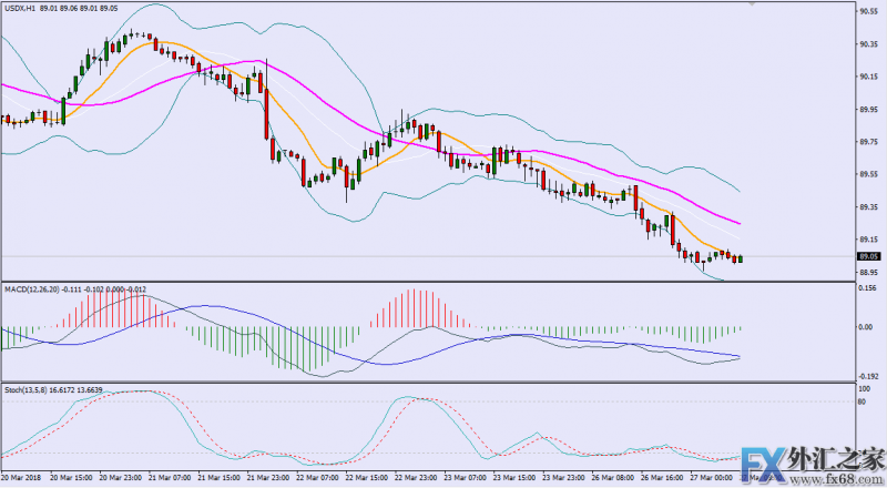美元指数K线走势图:(美元指数K线走势图)主要支撑/阻力位:策略说明:1. 行情趋势:美元在上一个交易日中汇价由于日线位于宽幅的布林中轨和下轨中运行,因此小时时间周期做空力度速度较快。目前美元触及布林下轨…