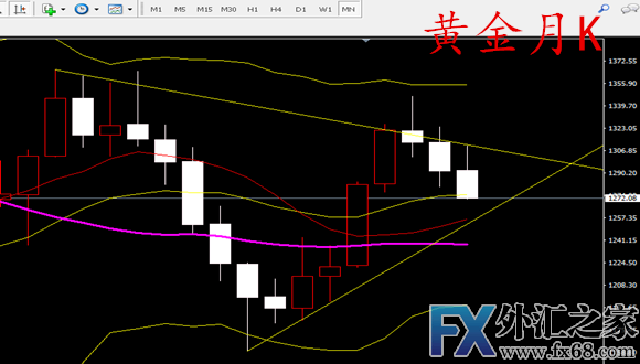 摘要 国际黄金:月线三连阴,价格强势下跌,布林线上轨走平,短期穿破月线布林带中轨,打到1271.43附近,月线三角区域关注1304-1256.周线4连阴短线给到周线MA60日均线1268.3 国际黄金:月线三连阴,价格强势下跌…