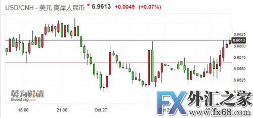 离岸汇率破6.96,在岸破6.95!10月25日(周四),今日欧盘时段,人民币走出了一波急跌态势。下午2:30 4:00这短短90分钟时间,迅速跳水逾150点, 离岸汇率破6.96,在岸破6.95!10月25日(周四),今日欧盘时段,人…