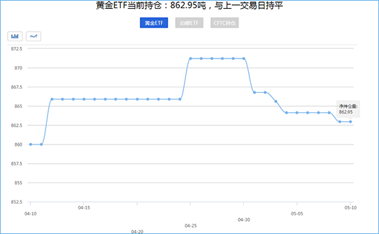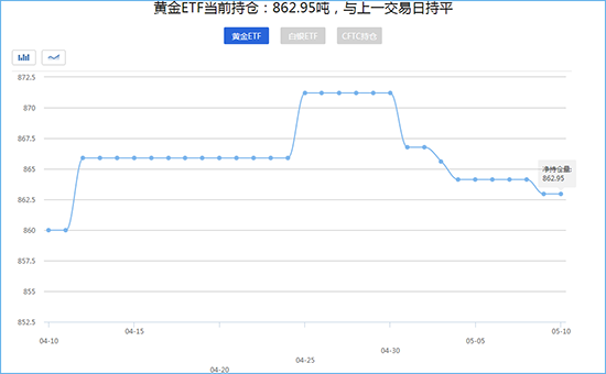 第一黄金网5月10日讯 5月10日监测数据显示:截至5月10日,美国商品期货交易委员会黄金ETF持仓量为862.95吨,与上一交易日持平。黄金ETF持仓量截至5月9日,美国商品期货交易委员会白银ETF持仓量为10054.63吨,与上…