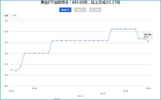 5月1日监测数据显示:截至5月1日,美国商品期货交易委员会黄金ETF持仓量为866.77吨,与上一交易日持平。第一黄金网5月2日讯 5月1日监测数据显示:截至5月1日,美国商品期货交易委员会黄金ETF持仓量为866.77吨,与…