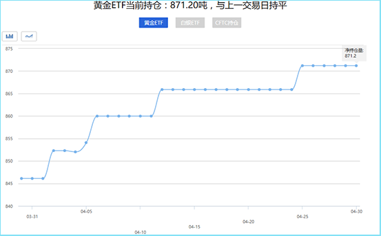 第一黄金网5月1日讯 4月30日监测数据显示:截至4月30日,美国商品期货交易委员会黄金ETF持仓量为871.20吨,与上一交易日持平。黄金ETF持仓量截至4月30日,美国商品期货交易委员会白银ETF持仓量为9856.67吨,与上…