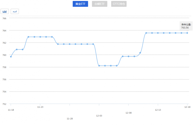 黄金ETF基金持仓创逾四个月新高 12月24日黄金及白银ETF持仓量走势查询! 2018年12月24日 09:13来源:第一黄金网 责任编辑:summer12月24日监测数据显示:12月24日,美国商品期货交易委员会黄金ETF持仓量为763.56吨…