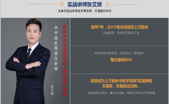 张艾辉--实战讲师,亲身实践应用系统交易思维,打造盈利传奇。