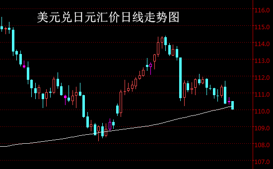今日亚盘,美元兑日元开于110.50,开盘后便持续下行。截止北京时间9点10分,美元兑日元汇价交投于110.04,录得自今年4月25日以来的最低价位,日内跌幅达到0.4%。