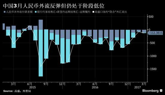 据外汇管理局上周四发布的数据,银行代客人民币涉外收付款逆差规模从2月份的55亿美元扩大至3月份的112亿美元。高盛经济学家邓敏强等人在上周四报告中写道,随着人民币外流加速,中国3月份资本淨流出增加至130亿美元,但仍低于2016年下半年每月平均的550亿美元。2月份资金流出70亿美元,是2015年6月以来最低水平。