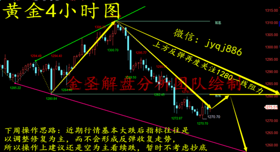 金价自去年8月份1160低点上升到高点1246以来,黄金长线上涨趋势的底线就在1255美元左右,代表着1246下跌以来的50.2%的斐波那契回撤位。那么金圣预计只要金价高于回撤位,我们对5月份黄金仍持乐观态度。当然较好的数据让市场风险情绪持续回升,黄金继续收五连阴。本周四黄金盘中最低下探至1270.63美元,虽然黄金多头试图止血,金价在亚欧盘一度走高,但触及日高后回落转为跌势,仍运行在1280关口下方,考验1270关口的支撑。