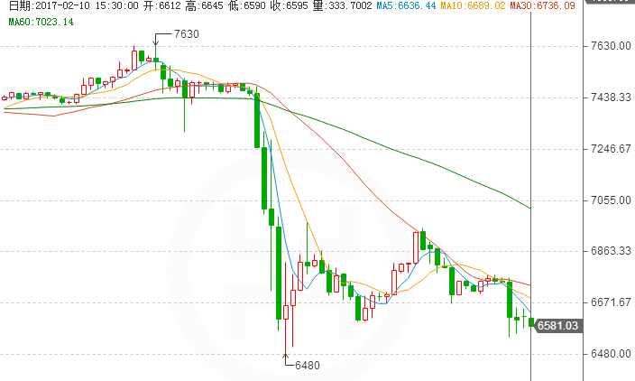 比特币今日价格(单位人民币):2月10日16:00 比特币报价为6581.03元 跌幅3% 最高6969元 最低6541元