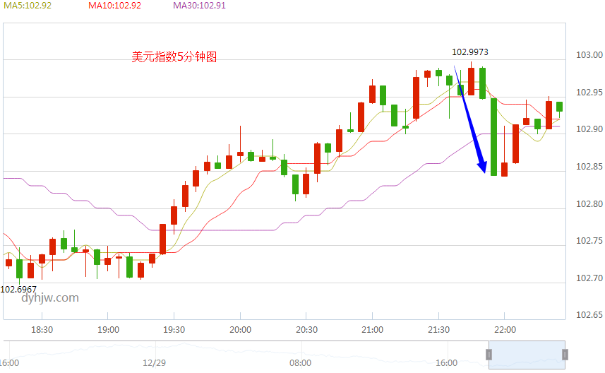 据第一黄金网行情数据中心显示,数据公布后,美元短线下跌之后反弹,现报102.9366点,跌幅0.34%。