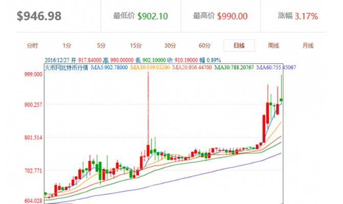 周五(12月23日)比特币价格强势冲破900美元关口,为2013年12...