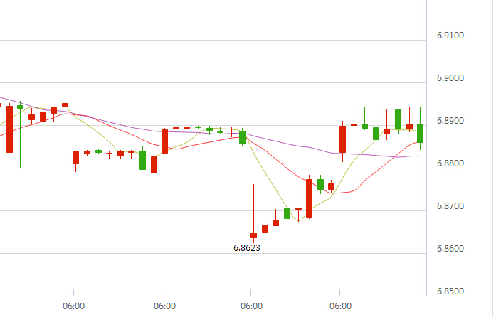 昨日人民币兑美元中间价报6.8808,较上一交易日下调233个基点,继续失守6.88关口。离岸人民币兑美元今日开盘以来小跌,人民币中间价公布后,离岸人民币略微缩小跌幅。