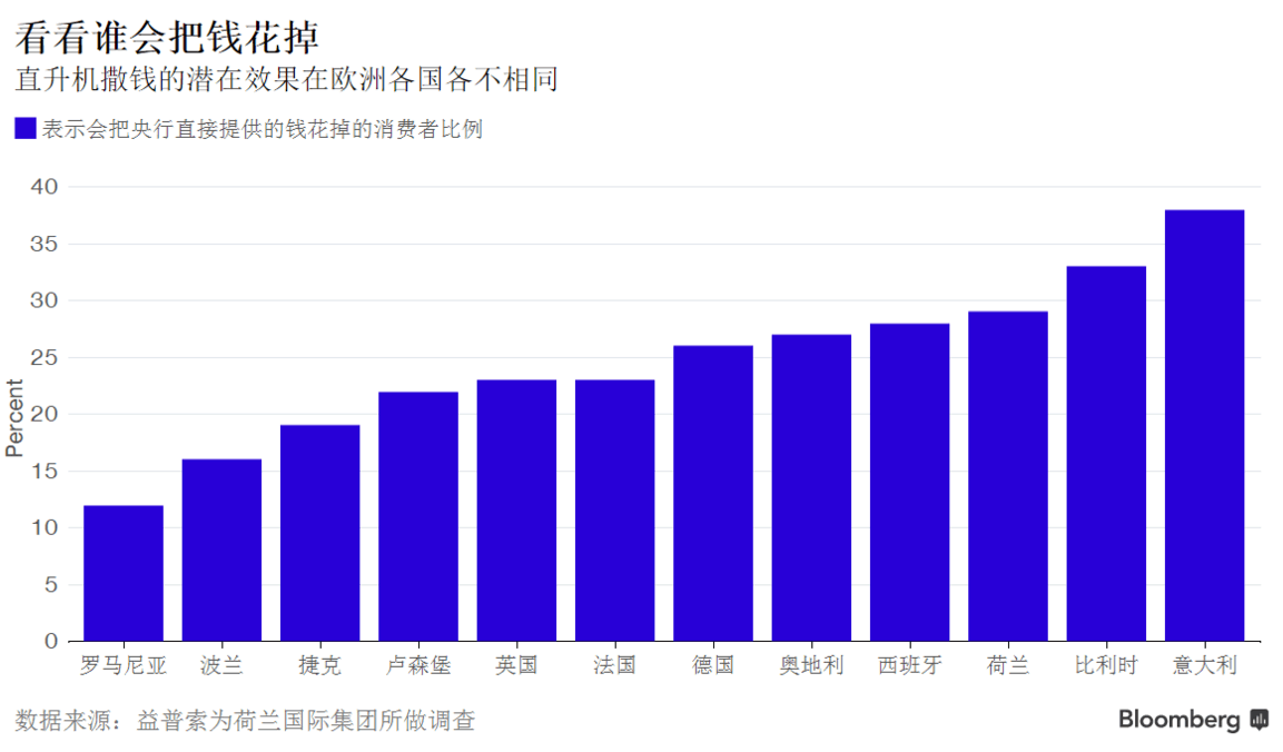 “如果人们都如调查中所言行事,那么你就不得不对这种刺激手段的有效性产生怀疑了,”荷兰国际集团高级经济学家Ian Bright说。他同时表示,另一种选择是直接把钱拨给政府用于基础设施开支、减税或是偿还债务,不过这种做法对于欧洲央行不适用,因为按照规定,它不得为政府提供融资。