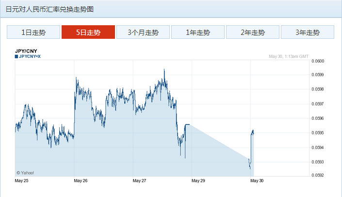 第一黄金网讯 据银行间外汇市场最新数据显示,2016年05月30日日元兑人民币汇率中间价为:1日元兑人民币0.0593元,100日元兑人民币5.93元。1人民币对16.8772日元,100人民币对1687.72日元。
