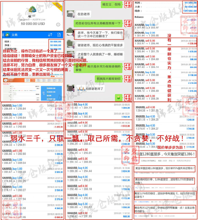 徐女士就是一个很典型的例子,入黄金市场有3年了,前前后后跟了近15位老师,亏损金额达到了200多万。找到锦云是就是因为3月份非农的行情又经历了最后一次血亏!问她对于仓位的把握一无所知,对于行情的把握更是懵的状态。钱都是自己的,账户也是自己了,为什么就不能自己多花点心思了,最后却将所有原因推给别人,亏的不是自己的钱?经过一翻了解之后,徐女士重新拿出了1万美金跟上操作,并且也答应我自己会慢慢的学习掌握仓位和把握行情!