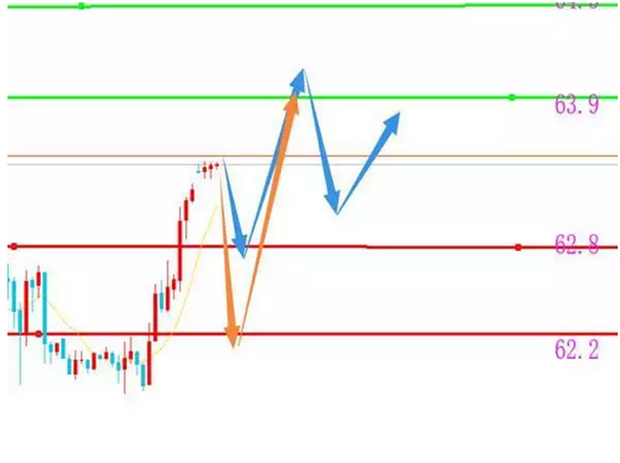 操作建议:回调62.8附近进场多单,止损62.5,止盈看63.9