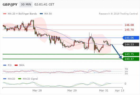 英镑/日元 当日内:在进一步下跌之前,反弹至 145.06 附近。