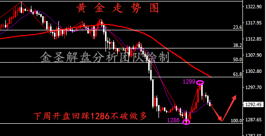 短线4小时图上,金价大阴下跌后周五反弹仍然在1300关键水平位承压,短期趋势偏向于低位震荡调整,结合大趋势看跌的走势,后市黄金整体趋势看震荡回落,因此短期操作仍然反弹空为主,以1300-1302关键水平位为防守位。短期阻力关注1298-1300区域。综合来看,下周一操作思路上金圣解盘个人建议以反弹高空为主,回调做多为辅,上方重点关注1298-1300一线阻力,下方关注1286-1288一线支撑。更多布局策略关注金圣解盘,中长线布局想要跟上也可以咨询这边。对于τ单的朋友,还是提醒一下进场必做好防守,合理止损,顺势操作,不骄不躁,总结交易情况、制定风控方案再去做投资!世事如棋,人海茫茫,人与人之间能够相遇相知,是必然,也是偶然。冥冥之中,自有一种说法或叫缘分的东西,你信,故我在。我是金圣,一个认真做黄金分析师的人!在线忝加:jyqj指导886