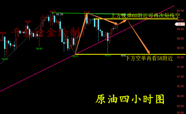 1、上方反弹至59.9-60.0一线做空,止损0.4美金,目标看59.1-59.2一线;