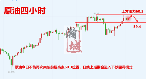原油操作思路:原油60.3空单,保护60.5,目标59.6-59.4;