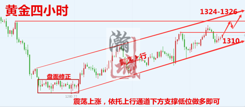 黄金操作思路:黄金1308多,保护1305,目标1315-1320;