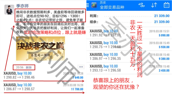 这是一位十万美金实盘学员跟单操作,经过一个月的跟单操作,目前资金已经到达十七万美金,即将完成仓位翻倍,平台资金无忧,利润可观,预约指导的实盘学员也比较多。月底我这边指导名额也所剩无几,目前只对前期亏损严重,想要挽回亏损的朋友开放回本布局指导。不论前期亏损多么严重,只要你找到亦师,我都有信心帮你挽回亏损,但前提是你必须严格按照我这边的布局进行操作,严格进行每一步操作。如果你还在为亏损而自责,为回本而苦恼?那么你需要一位军师助你操控大局,一次选择,就是一次转折!一次尝试,就是一次机会。