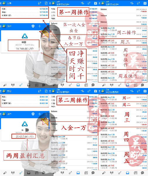 实仓案例——杨先生也是一个饱受市场亏损折磨的人,很早之前就加到昀涵,关注了昀涵很长一段时间,终于准备入金7000美金准备跟上操作。不巧刚入金就被家人发现制止,没过两天便出金了。经过春节近半个月的协调,终于在家人同意的情下入金一万美金跟上操作。操作两周汇总(2.19 -3.1)盈利一万五千美金,实现翻倍盈利!
