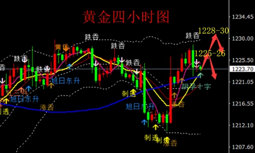 综合来看,今天上午的震荡区间大约在1220—1228区域之间,在震荡的过程中,对于稳健的投资者来讲并不适合入场,除非你对盈亏看的淡薄,随意去博取一个方向。从技术形态上来看,目前的形态比较纠结,多空的走势均不明显,需要进一步的观察才能确认,笔者认为在欧盘时段是否方向才能明朗。