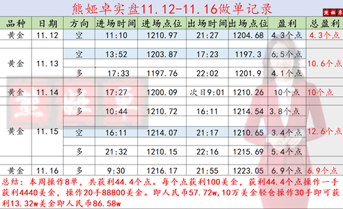 一周无损单百万盈利尽在掌握中,你把握住多少利润?(详细喊单对话百度《熊娅卓:一周无损单斩获百万利润,11.17下周黄金操作策略及走势分析》可查阅)