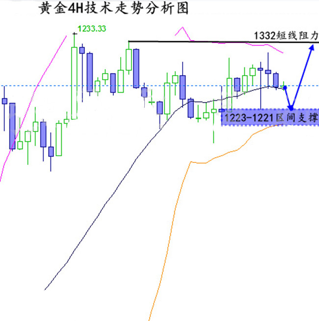 策略一:建议行情回调至1223-1220区间做多,止损1218美元,目标1230-1233;
