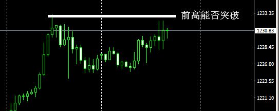 今晚重点关注前次高点1233能否被向上突破。假如无法突破,那么此附近会产生短线的双顶形态,未来看回落的概率较大。