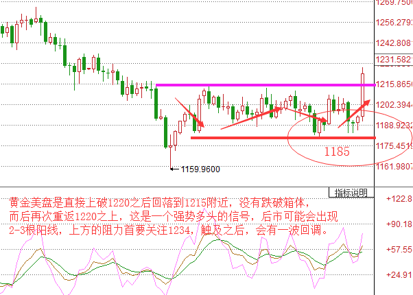 短线上1183.25低点确认,1190位置守稳,整理过后上行突破的概率就会增加。美指连续三日下探,美股大跌引发避险,黄金从中受益将是这是必然的结果。就后市初梵预期今日日内金价将出现回调震荡走势,防守1210其次上方做多,操作上维持低多为主。上方关注1228-1234阻力,下方关注1214初步支撑;