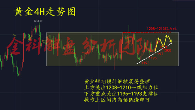 黄金策略:反弹不破1208-1210附近空,止损4美金,目标下看1200;回撤不破1200-1198附近多,止损4美金,目标上看1208附近。