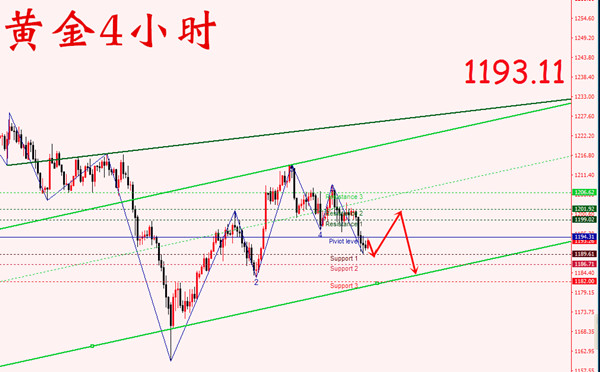 技术面上,现货黄金日线图显示,行情意外大幅下挫,行情最低至1190附近企稳后目前小幅回升,暂时交投于1193附近。当前K线再度跌至1200美元整数关下方,金价跌破20日均线的支撑,下行空间无明显支撑。技术指标目前走势较为消极,KD以及RSI指标走势疲软暗示金价中线承压。而MA均线的不断下行趋势也暗示黄金倾向下跌。日内上方重点关注1196-1200区间阻力,这一线可以试探性进场空单,下方则重点关注1190关口的得失,若失守这一线,行情很有可能试探1187-1185一线支撑,好的是隔夜金价收于关口上方,证明下方支撑力度十足,所以操作上建议投资者在行情回补时期,介入低位短线多单更为适宜。具体策略如下: