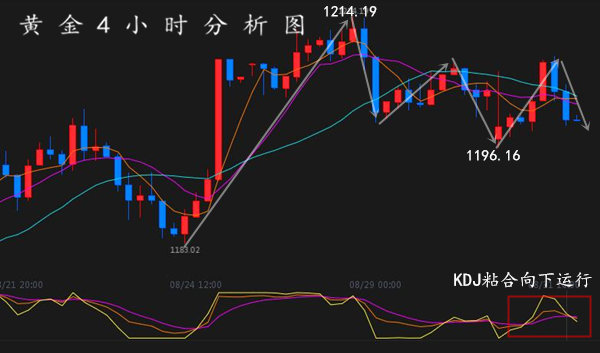 当前黄金已经回落至1201美元附近,那么我们的空单已经快要到达盈利目标,按照彻一的观点,黄金短期趋势预计继续围绕1200关口上下走震荡调整;技术面4小时图上看,金价当前持于布林带中轨附近,布林带短期有缩口迹象,下方短期支撑关注下轨线1197美元附近,另外周四行情下探低点位置在1196附近,那么晚间黄金回落的支撑关注1196-97位置。