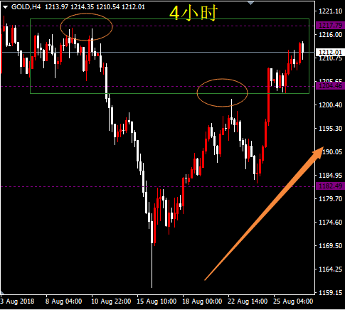 今日白盘黄金继续上行,到目前为止价格最高触及1214.35,我们从4小时的整体走势来看,上行趋势稳健,并未有削弱迹象,所以思路上我们做多为主的策略,目前需要关注上方1218一线的压力,下方则关注1204的支撑,这两个点位决定价格走向,如果价格突破我们则可以顺势操作。