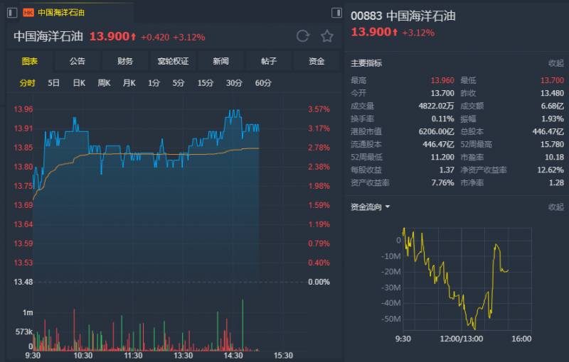 瑞信:基本面优于国际大型同业 维持中海油(00883)“跑赢大市”评级 目标价17港元 提供者 智通财经