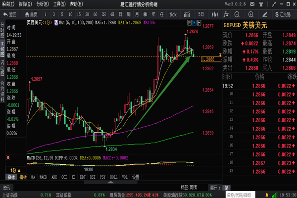 汇通财经易汇通软件显示,北京时间19:57,英镑兑美元报1.2878/80。 【免责声明】本文仅代表作者本人观点,与汇通网无关。汇通网对文中陈述、观点判断保持中立,不对所包含内容的准确性、可靠性或完整性提供任何明示或暗示的保证,且不构成任何投资建议,请读者仅作参考,并自行承担全部风险与责任。