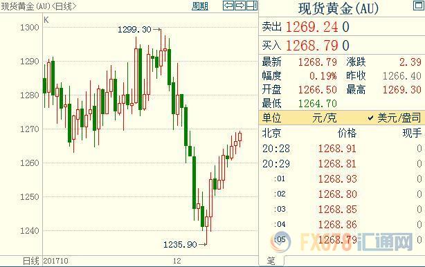 汇通财经易汇通软件显示,北京时间20:47,现货黄金报1268.77美元/盎司。 【免责声明】本文仅代表作者本人观点,与汇通网无关。汇通网对文中陈述、观点判断保持中立,不对所包含内容的准确性、可靠性或完整性提供任何明示或暗示的保证,且不构成任何投资建议,请读者仅作参考,并自行承担全部风险与责任。