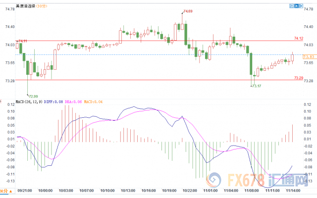 亚市盘中,美油现报73.80,跌幅0.42%。贸易战升级风险浮现,令投资者避险情绪升温。在对经济前景充满顾虑的背景下,亚洲' 股市开盘普跌,连累美布两油跳跌逾1%。