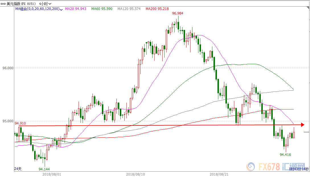 亚盘时段,美元指数现94.795,涨幅0.11%。周一早些时候美国和墨西哥北美自贸协定的努力取得了突破,已就修订后的协定初步达成一致,这使得市场对于贸易纠纷的紧张情绪明显回落,使得美元跌破了95关口。这也为加拿大重新加入谈判打开了大门,这是在更新协议方面向前迈出的重要一步。